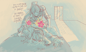 26 pages/13 spreads of drowsy dykey doodling. NSFW/R-18, contains explicit content.